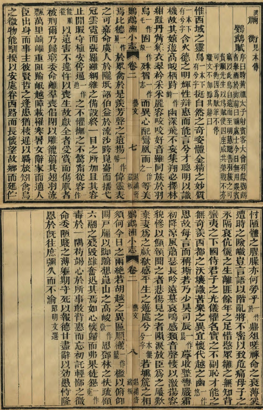 《鹦鹉赋》作为汉代咏物赋中的杰作传颂千余年,而原本位于武昌长江侧的古鹦鹉洲,却在明末的长江大洪水中奔溃无存,祢衡祠、墓也随之逐浪而去。今日汉阳之鹦鹉洲实乃清代新淤而成,沿用其名,亦是感佩名士才华横溢、精神不朽的寄托。