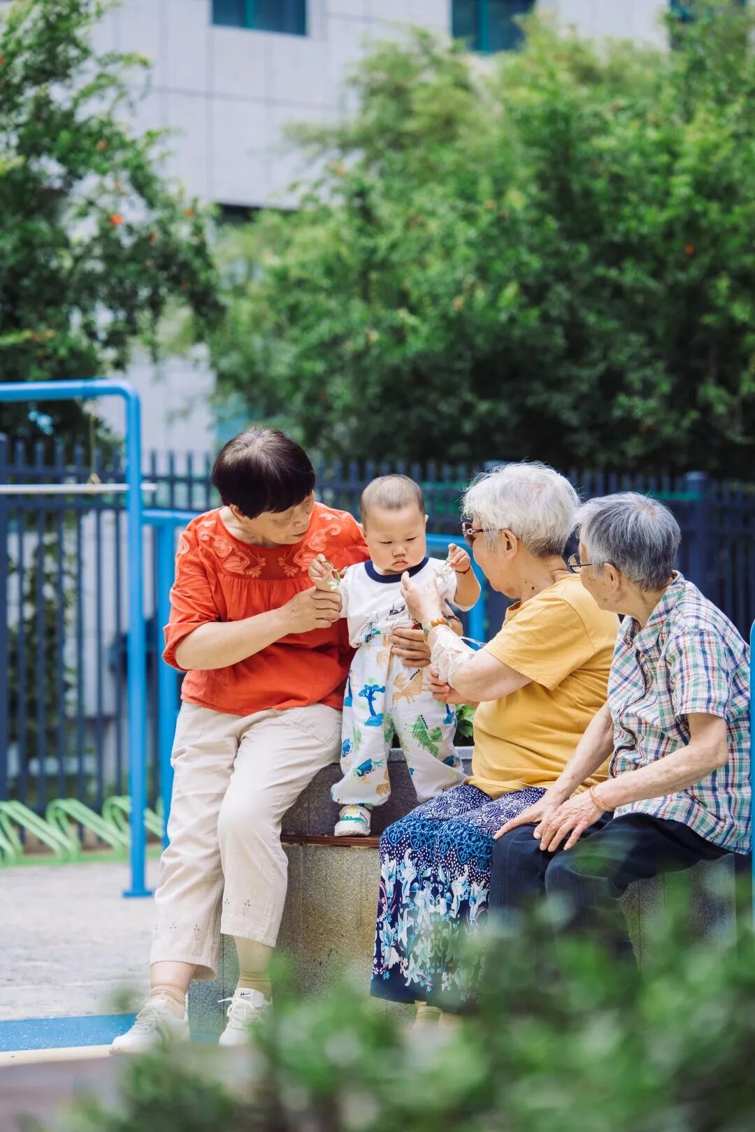 家住武昌区中华路街道都府堤社区北城角13号的聂大爷坐在条椅上,跟邻居王婆婆聊天。一旁蓝色栅栏内,草木葱茏,健身设施簇新,晾衣架整齐排布,环形扶手立于凳边……它们共同构建起旧楼环抱中的一处小小桃花源。王婆婆说:“新修的公园,让这棵枇杷树都变美了。”