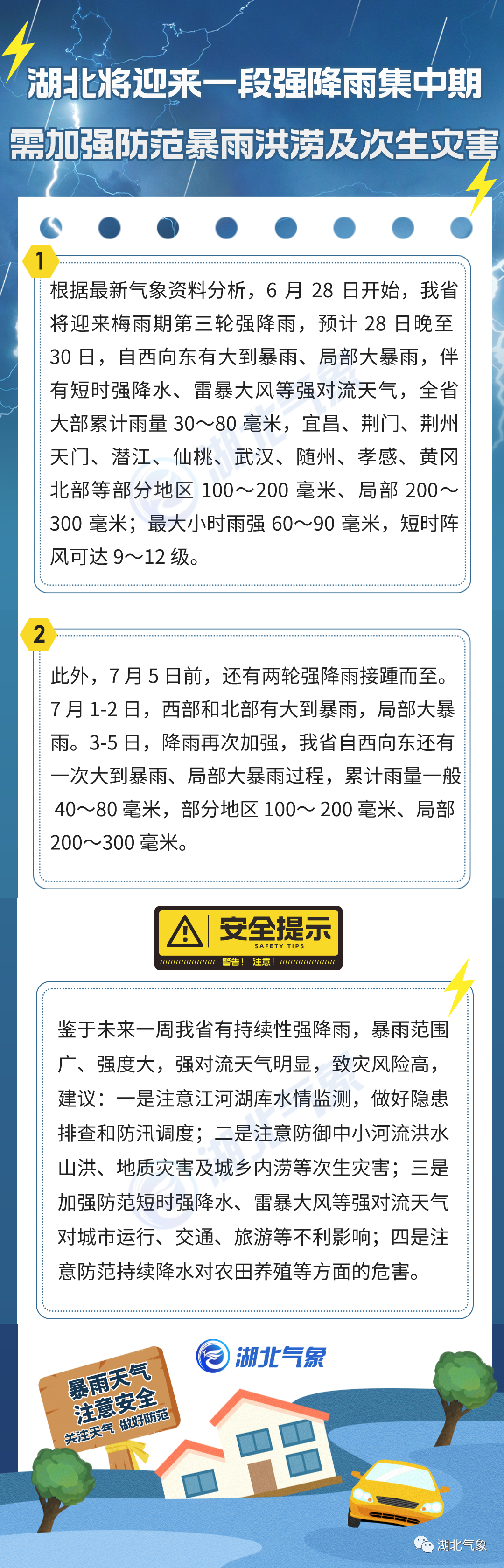此外,7月5日前,湖北省还会有两轮强降雨过程接踵而至。