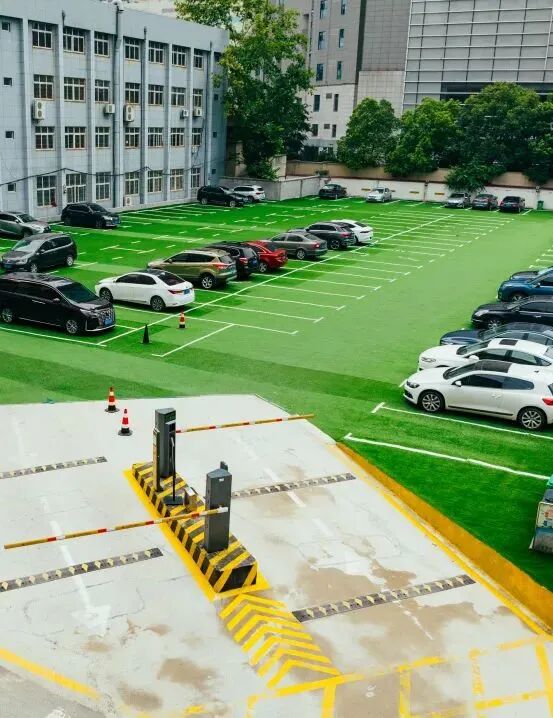 为了“消灭”卫生死角,提升整体市容形象,有效解决该路段车辆乱停乱放的问题,武昌城管联合街道与武珞路中学协调沟通,最终在设计规划后,将地块除草、平整后进行硬化,在场地西南角新开一个4米宽大门,以方便武珞路车辆出入,最终成功改造为一处公共停车场。为了让停车场更为整洁美观,在场地内部地面做了铺设人工草皮的绿化效果。