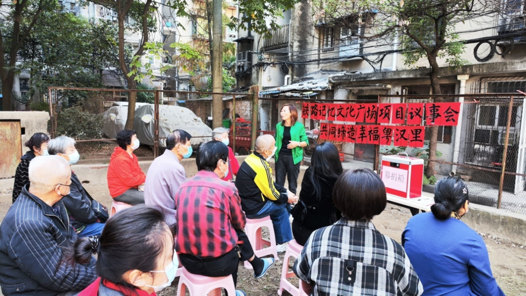最终在街道、社区、下沉单位等多方力量的协商和谋划下,居民代表的共同参与下,“家-粤汉里铁路文化记忆”休闲文化广场项目得以顺利启动。