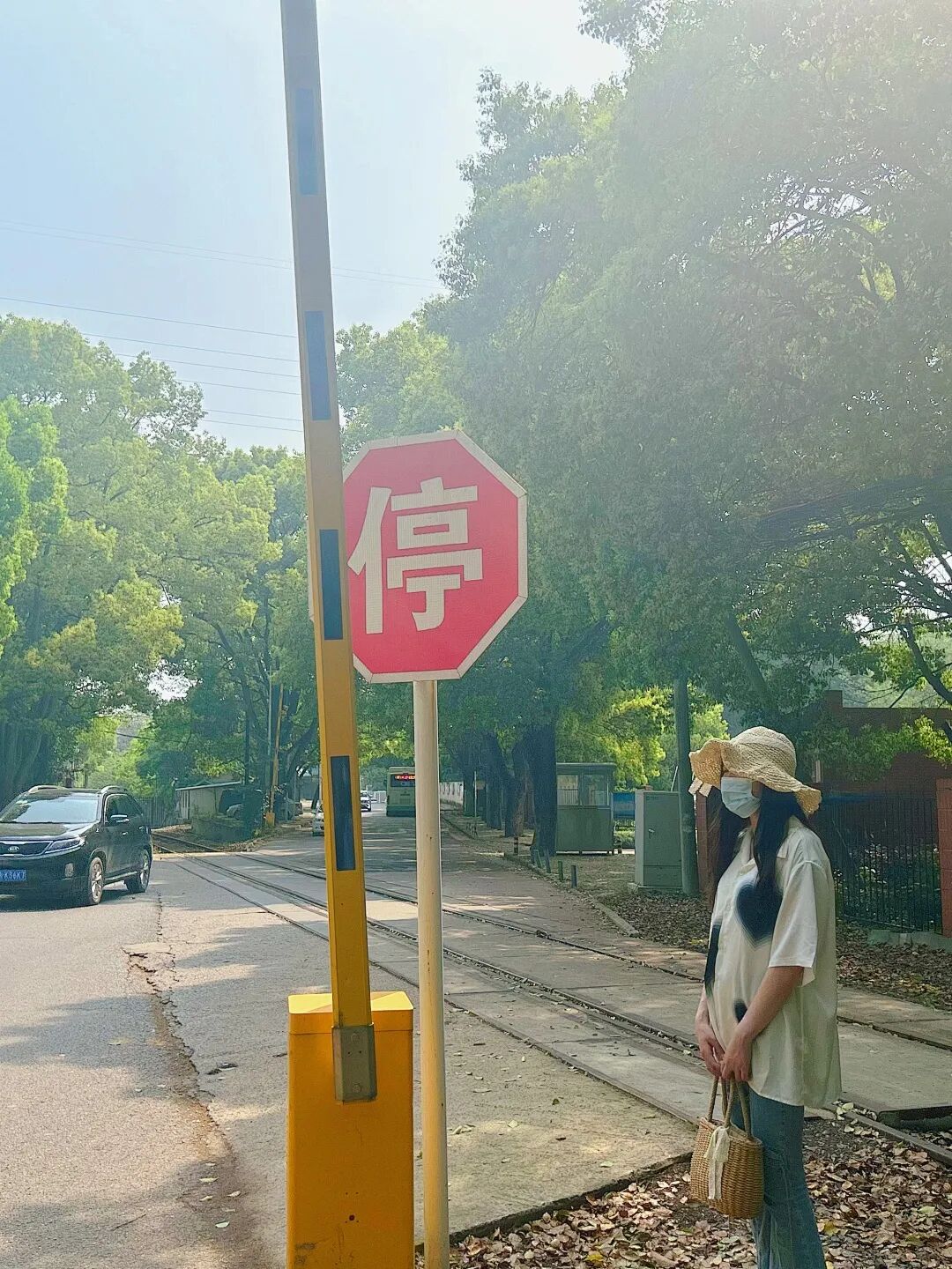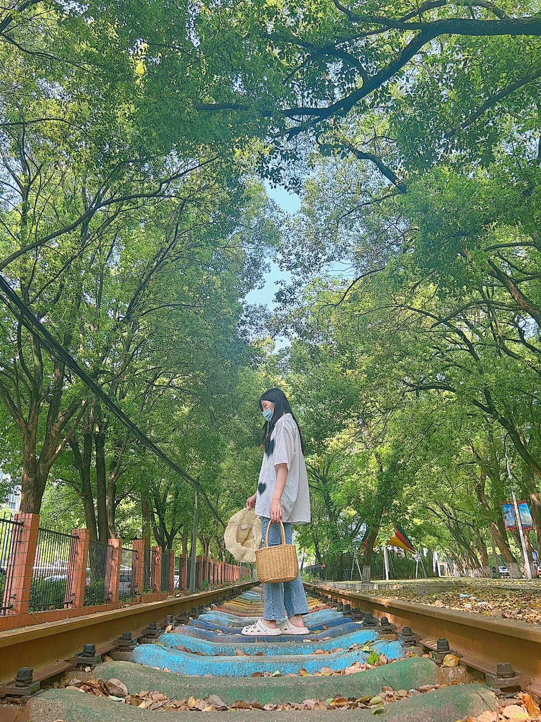 沿着两条铁轨交汇处,越往深处走,越像探秘一般。阳光透过树,洒下斑驳的光影。