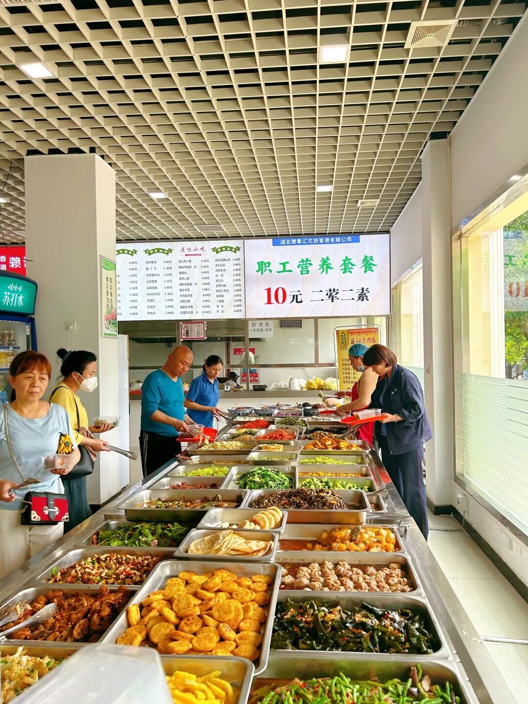 有一种物美价廉叫职工食堂。这里的菜品齐全、荤素一价,自助形式,10元吃饱,还有免费的例汤。这里的韭菜/青椒鸡蛋饼、蒸排骨真的是yyds!