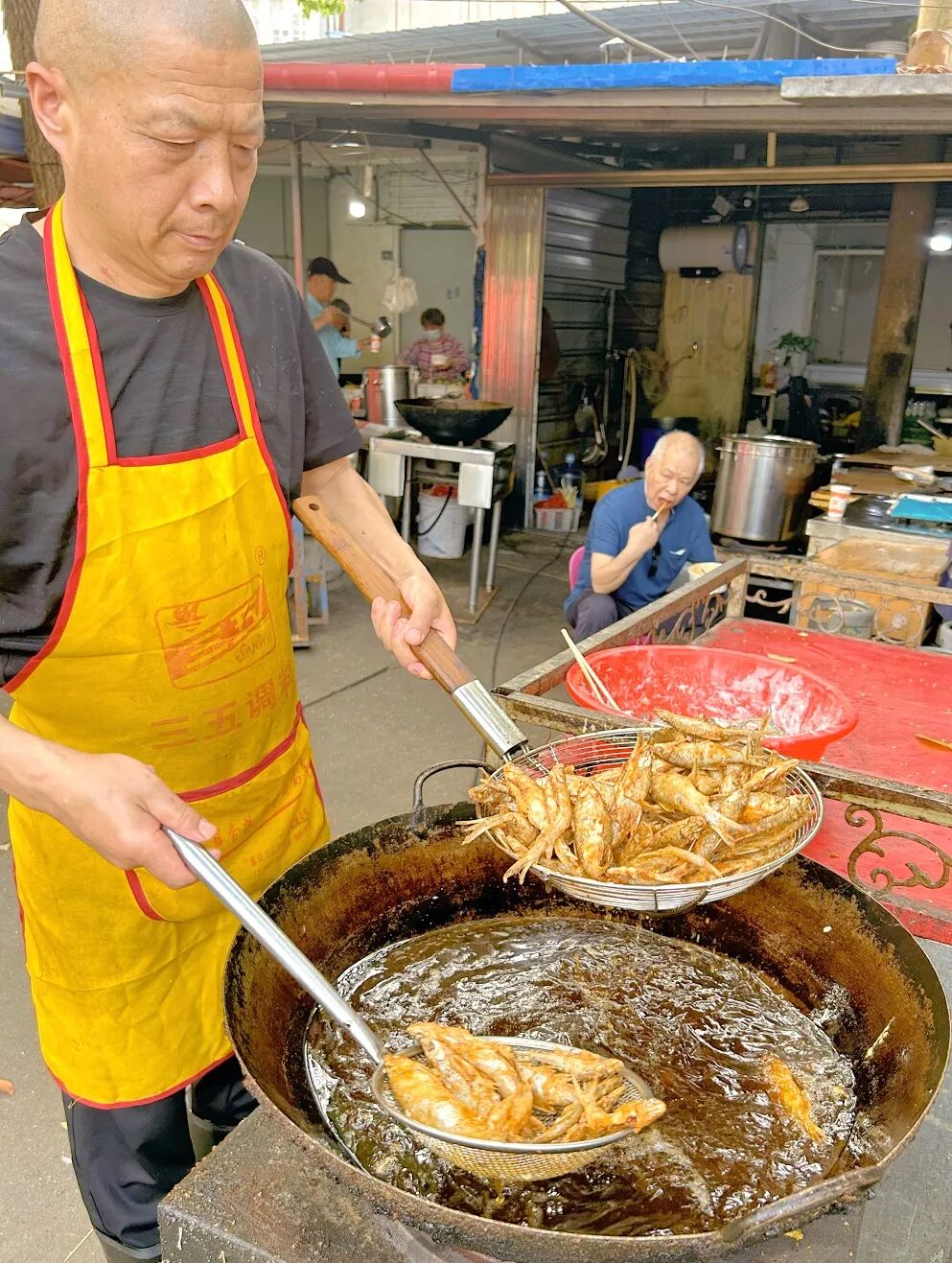 用手抓起刚炸好的小鱼“咔嚓”一口下去,“鲜”在口中弥漫,那一刻,全身的每个毛孔都是欢愉的,嘴根本停不下来。