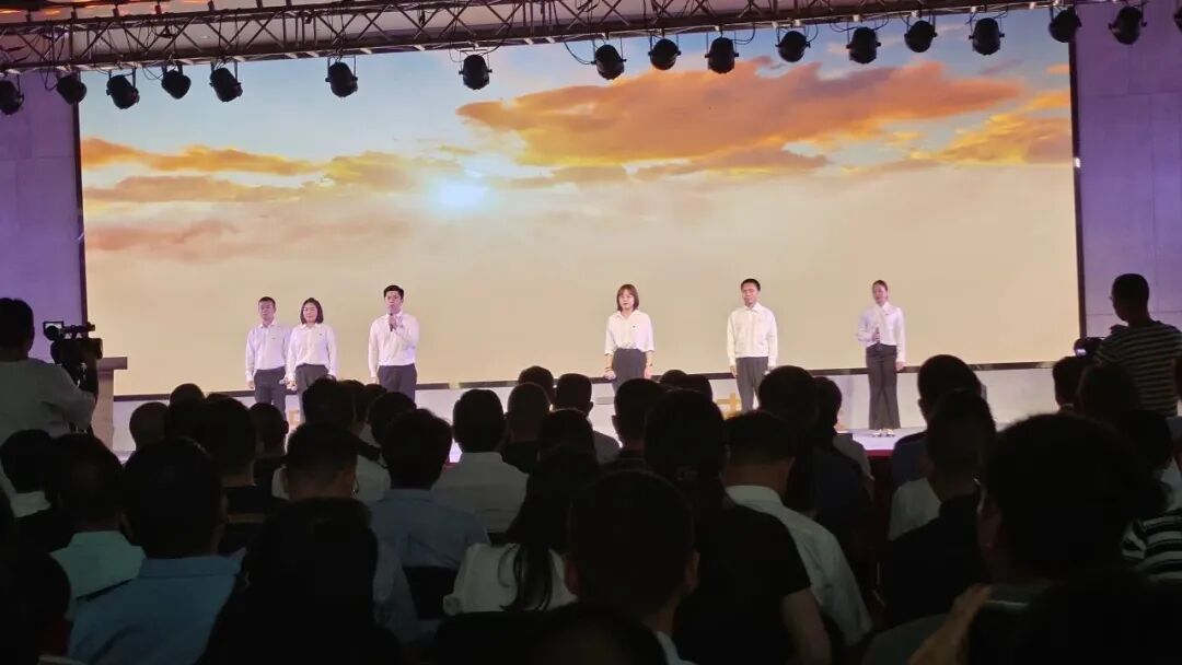 主题宣讲以音乐党课的形式开展,按照今朝(序章)、理想照耀中国(上篇)、思想引领航程(下篇)、启程(尾声)等四个部分有序呈现。全程共18个项目,歌曲吟唱、诗词朗诵、“新思想”知识抢答等环节有序穿插,全方位、立体式营造学习宣传贯彻党的二十大精神的浓厚氛围,会场高潮迭起,掌声不断。