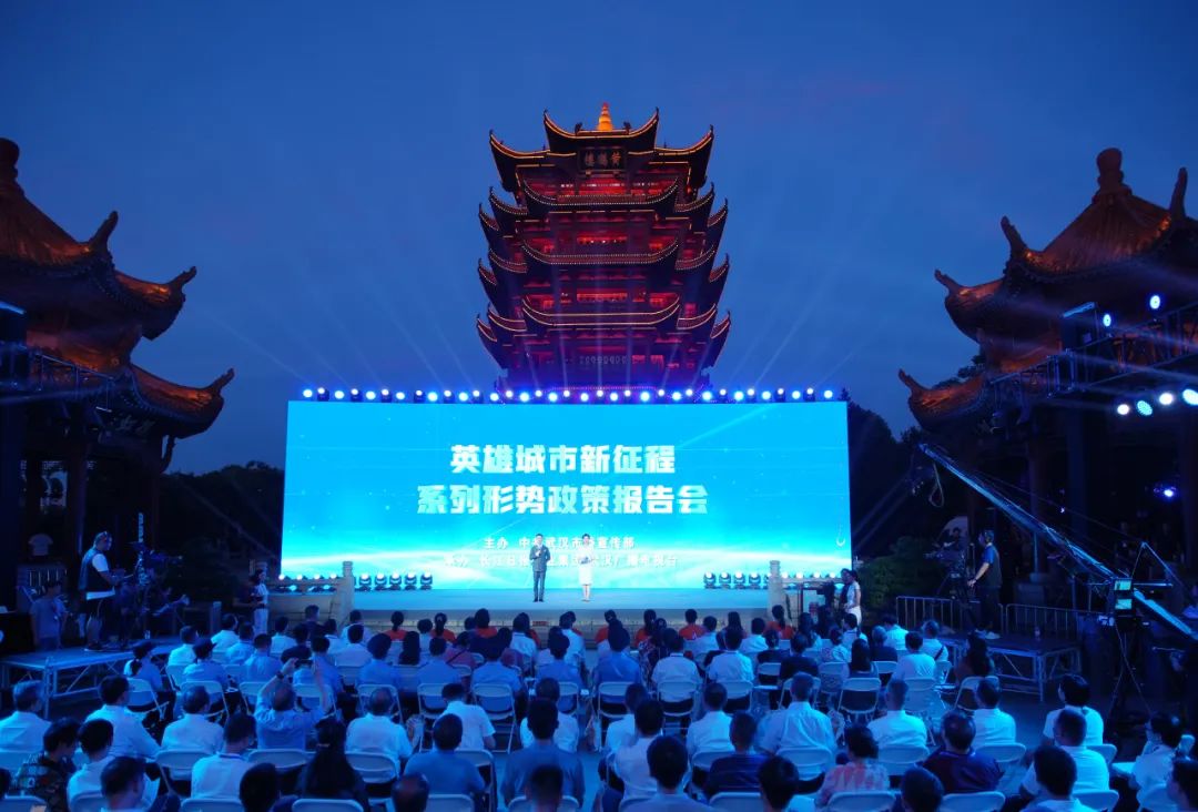 千年黄鹤楼下,现代高速列车来回穿行万里长江第一桥。7月10日晚,“英雄城市新征程”系列形势政策报告会启动仪式暨首场武昌区专场报告在黄鹤楼公园举行,展现新时代英雄城市的昂扬姿态与拼搏场景。
