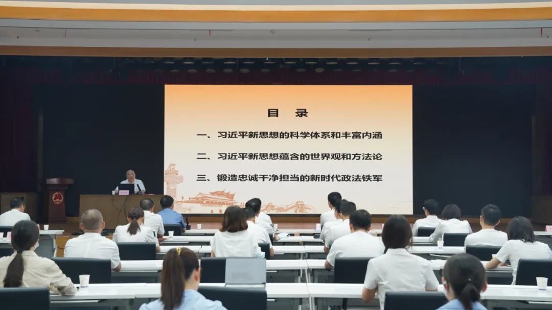 本次活动,特邀中央社会主义学院特约研究员桂汉良为嘉宾,以《习近平新时代中国特色社会主义思想的世界观和方法论——扎实开展主题教育努力锻造政法铁军》为题开讲特色党课。