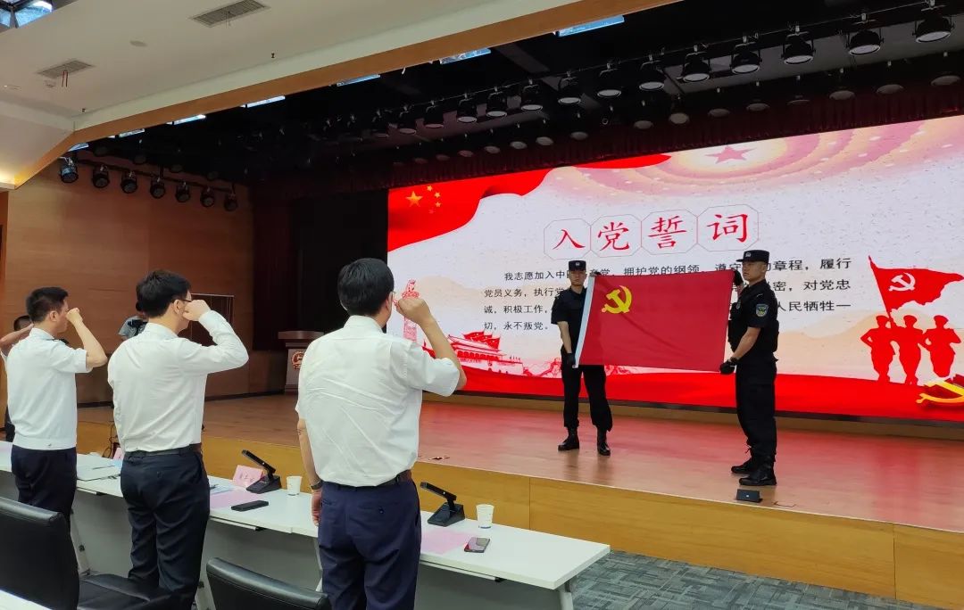 “我宣誓,我志愿加入中国共产党……”,活动迎着鲜艳的党旗,在武昌公安分局二级高级警长刘五桥领誓,全体参会党员干部再次入党宣誓中展开。铮铮誓言,铿锵有力,饱含深情在会场激荡,充分展现了全体政法干警对党忠诚、永远跟党走的赤诚之心。