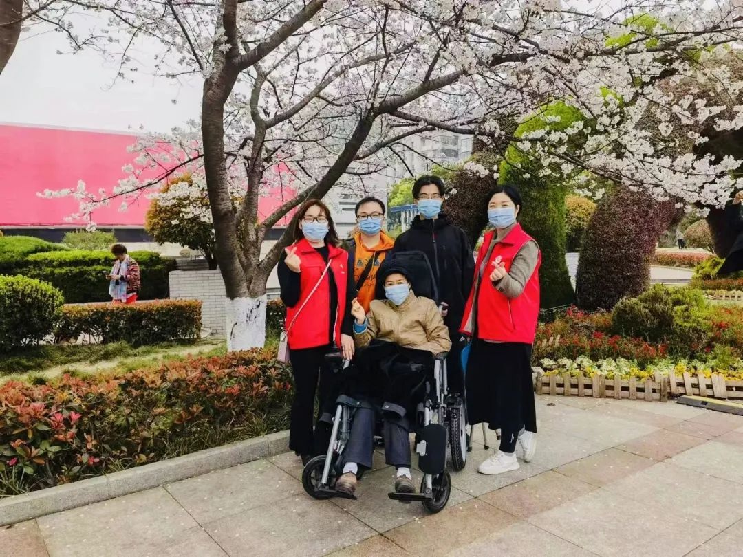 社区残疾人李女士因腿部肿瘤致肢体四级残疾,常年独居在家。今年4月,江城樱花盛放,李女士按捺不住内心的激动,也想出门赏樱花。李女士家住二楼,上下楼面临困难,社区通过“小活动”链接楚馨社会组织和武汉大学“哲里有爱”志愿服务队链接资源申请爱心电动轮椅。社工、志愿者有的抬轮椅、有的搀扶着她,经过大家的合力帮助,李女士顺利下楼来到了东四路,完成了赏樱“微心愿”。