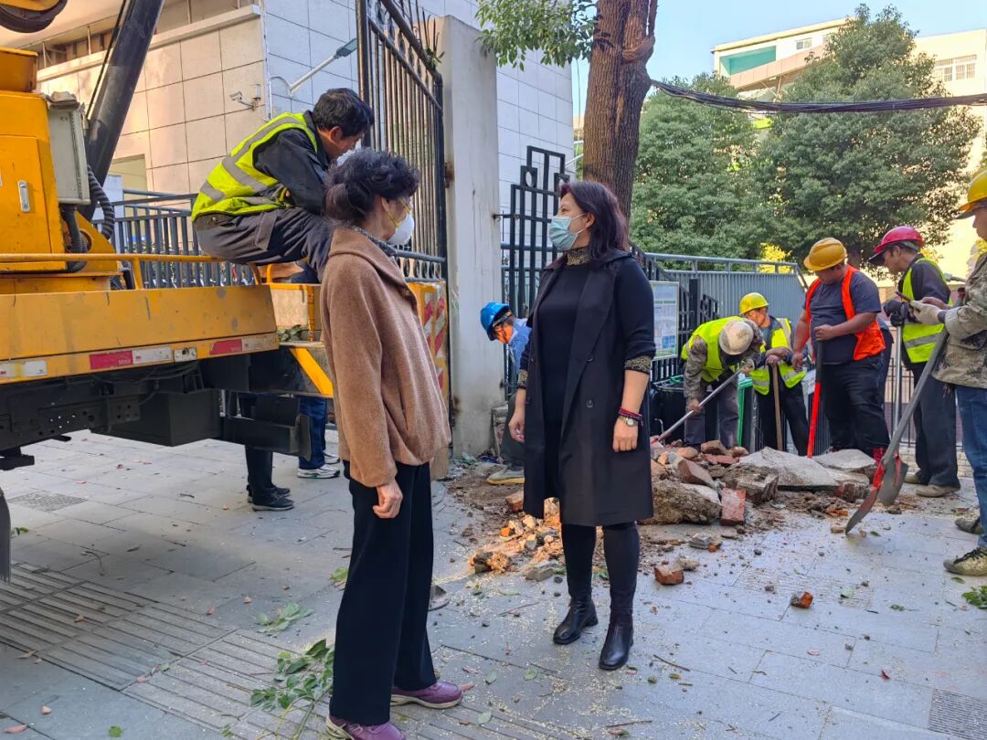 2023年3月,在老旧小区改造工程推动下,水果湖一小宿舍小区周边和大门都已加装了铁栅栏,道路修整一新。但横亘在小区大门口的一棵大树却成为居民出入的阻碍。这棵大树约有20年历史,紧贴大门生长。树根被树池包围,直径约一米,使原本2米宽的大门通道只剩半边可供出行。问题如何解决?这时,茶港社区组织召开居民议事会,请来居民出主意。小区内大部分居民表达了将大树移走的强烈意愿,但也有几位居民觉得这棵树见证了水果湖第一小学的历史,应当保留。在居民集中商讨下,最终确定了“在不损害大树的前提下,将大树合理移栽”的议题。社区联合街道、下沉工作队等多次召开协调会,同时向武昌区城市管理综合执法大队园林中队发起需求申请,发挥“决策共谋”作用。