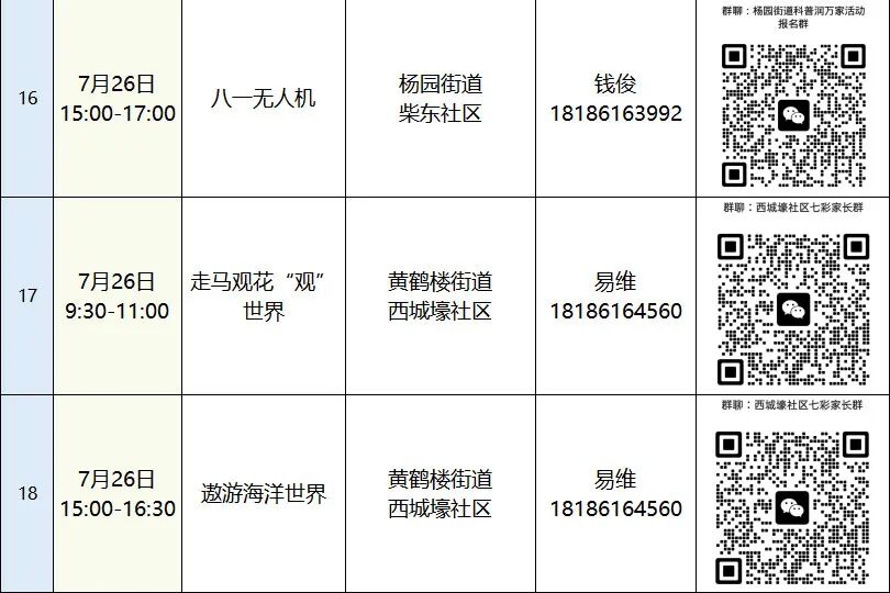 报名前50名的居民届时若无法参加活动,应提前一天知会报名联系人。