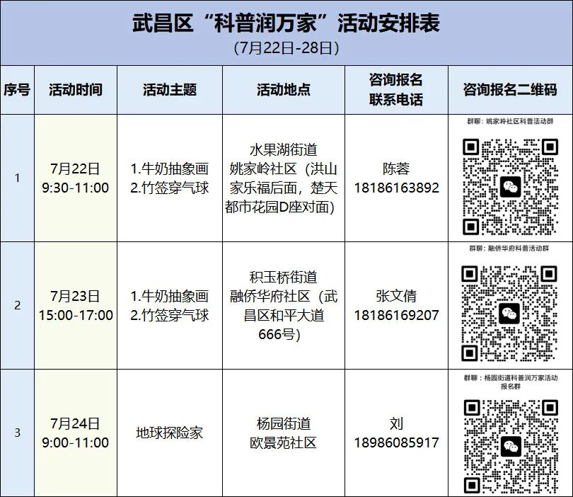 用科学提质百姓生活,让科普滋润千家万户。武昌区科协“科普润万家”7月第四周(7月22日—28日)活动正式发布!