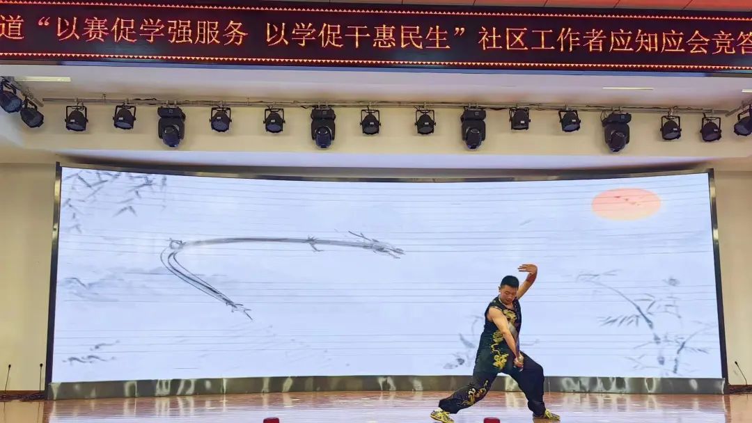 “尺素间,楮松烟,陈墨点点 落心弦。”一支仿若桃林仙子起舞的《缥缈醉》展现了喻家湖社区居民的灵动幸福;一段轻松诙谐又“带感”的小品《我最卷》道出了徐东社区工作者争先竞位绝不躺平的决心;一场行云流水、气吞山河的巅峰对决武术表演凸显了三角路社区工作者的飒爽英姿,震撼全场;情景剧《挖出幸福花》实景展示了武车社区网格员的工作情况,以及对“美好武车” 共同缔造的美好愿景。