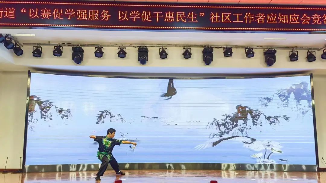 竞赛场上,参赛选手相互切磋,一决高低;竞赛场下,社区干部和居民代表强强联手,风采展示环节精彩纷呈。