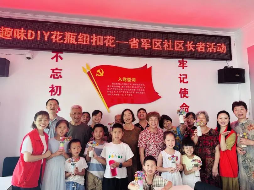 省军区社区聚焦随军随队一老一小,解决军人后顾之忧,发挥辖区单位省军区、下沉单位、居住地党员、社会组织、社区居民等5方力量共驻共建,共同开展“同谱和谐曲 共圆强军梦”等系列尊老活动和童伴活动,进一步丰富社区老年人和儿童业余生活,营造和谐快乐的社区氛围。