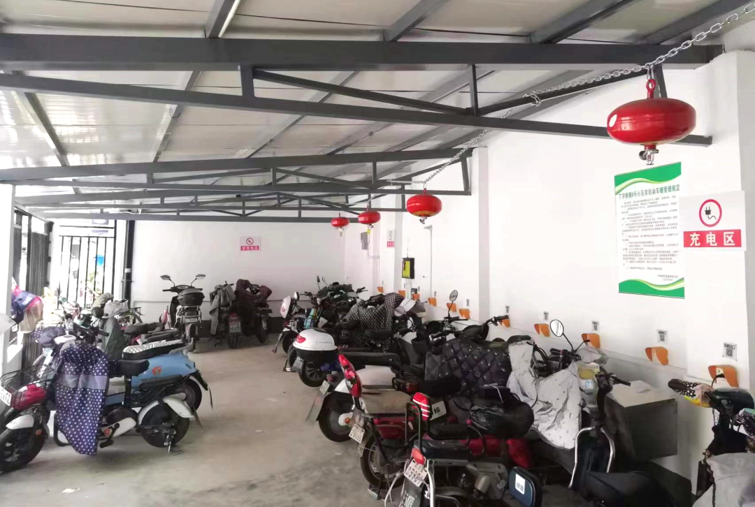 丁字桥路8号居民反映小区非机动车棚已使用了20余年,充电插座及车棚顶的木梁安全隐患突出。社区联合下沉单位省残联机关党委、小区党员群众多次共商共谋,省残联出资5万元,社区设计实施方案,党员干部群众负责监督,三方共同修缮新车棚。为车棚配建统一的电动自行车智能充电桩,安装高清摄像头、悬挂式灭火器等设备,解决了电动车充电难及“飞线”充电安全隐患等问题,居民的幸福感进一步得到提升。