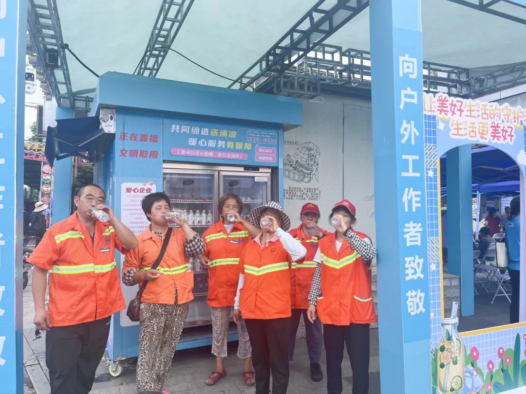 “爱心冰箱”公益燃动江城,自2022年夏天项目启动后,累计获捐5万余瓶饮用水,为3万余名户外工作者免费提供冰饮。今年“共同缔造 爱心冰箱”项目升级重启,户部巷牵手武汉十大街区共同接力,爱心企业、热心市民捐赠总数已超2万瓶,服务1.5万人次,公益链条传动整个江城,爱心善举受到央视新闻、新华网等媒体关注报道。