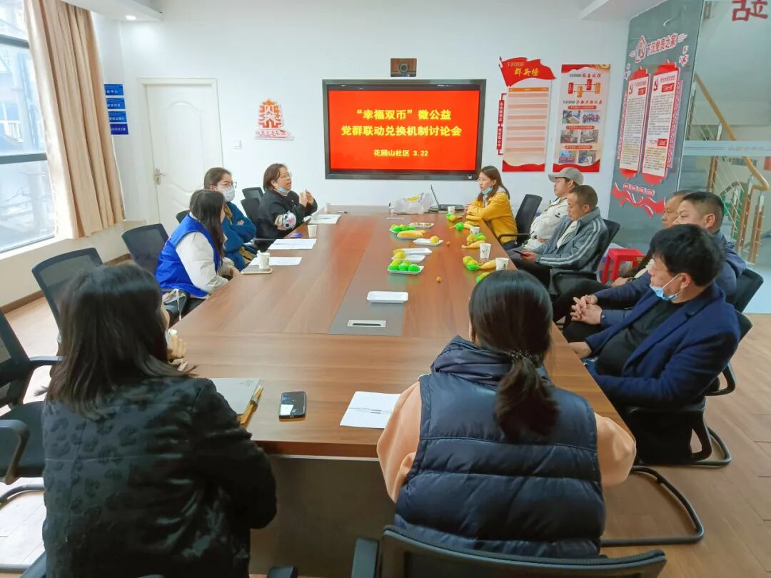 ▲党群联动兑换机制讨论会,邀请网红商铺共同探讨“公益币”兑换机制