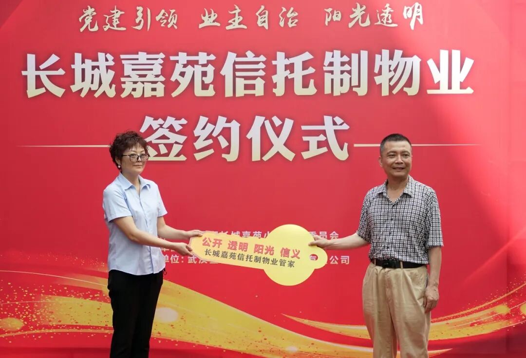 7月28日,随着湖北省武汉市武昌区水果湖街道长城嘉苑小区业委会与武汉金管家物业管理有限责任公司正式签约,武昌区第三家信托制物业试点小区正式开始运行。