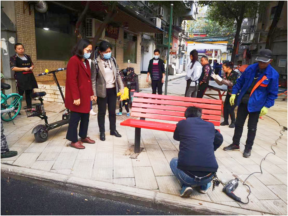 活用共建力量,认领回应居民群众需求。社区运用省总工会共同缔造经费,对农垦宿舍及红巷片区小区周边环境进行改造提升;联合省委老干局,筹措资金在老年人集中的片区安装了晾衣架、靠背排椅、休闲套椅、长条凳等公共设施,深受辖区老人认可;携手辖区共建单位,开展消防知识宣传教育活动,制作消防宣传栏、防火警示标语、公共逃生引导等消防标志,并购置120余个灭火器投放到楼栋;联合区委老干部局为多个片区增设灭蚊灯,给居民群众带来安心舒适的乘凉环境。
