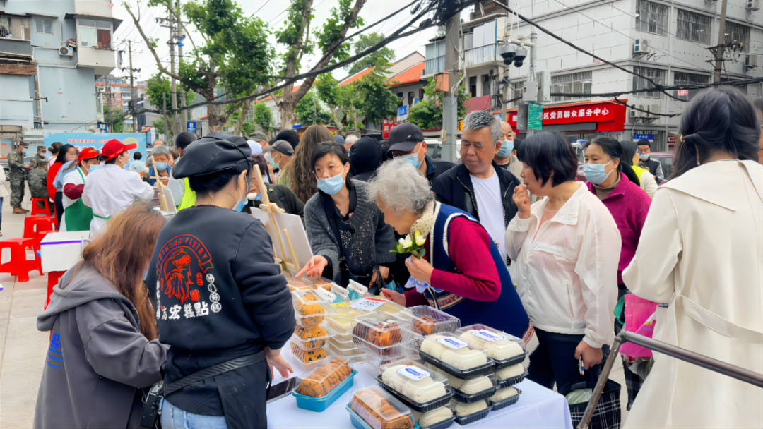 社区还组织举办“大成有爱幸福益家”美食创意集市,经过广泛发动,二十余家商户积极参与,将自家“法宝”在摊位竞相摆放。为激发辖区消费活力,社区发放消费券,游客和居民热情高涨,各个摊位前都排起了长队。