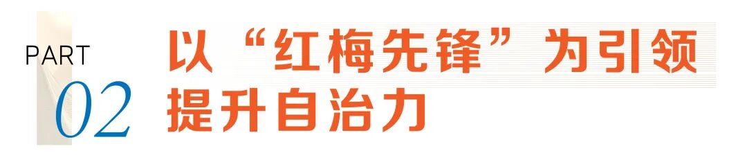 梅隐寺社区坚持以“共同缔造”理念推进老旧小区基础设施微改造,今后将采取更多惠民举措,提升居民生活环境,以小区“新颜”换居民“心暖”。按照“一楼一阵地、一院一特色”的工作原则积极推进因地制宜的老旧小区院落自治模式。打响“梅好院落自治联盟”品牌特色,院落自治联盟相较于院落自治,有了更为广泛的共享资源,有了更为高效的协作机制。无论是小区车位还是活动空间,不同小区的居民们可以共享其中资源,共同休闲娱乐,将友善的睦邻氛围从“内”向“外”扩散,带给小区居民在家门口看得见、摸得着的“小幸福”。在“红梅先锋”们的带动下,越来越多的社区党员、下沉党员、居民骨干加入红梅先锋队伍中,27名楼栋长、101名邻里长遍布社区各个院落楼栋,“红梅先锋”带头上阵,在居民中主动靠前做好服务,他们活跃在政策宣传、矛盾协调、治安巡逻、邻里关照等各个岗位上,成为“梅”好生活共同缔造的主力军。