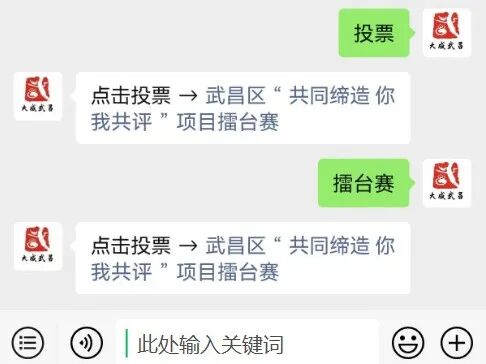 在对话框中输入关键词“投票”“共同缔造”“擂台赛”“社区项目”即可进入投票页面,为您支持的社区点赞。