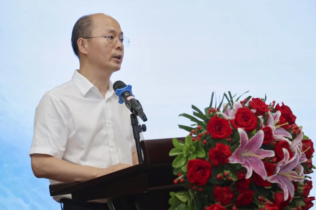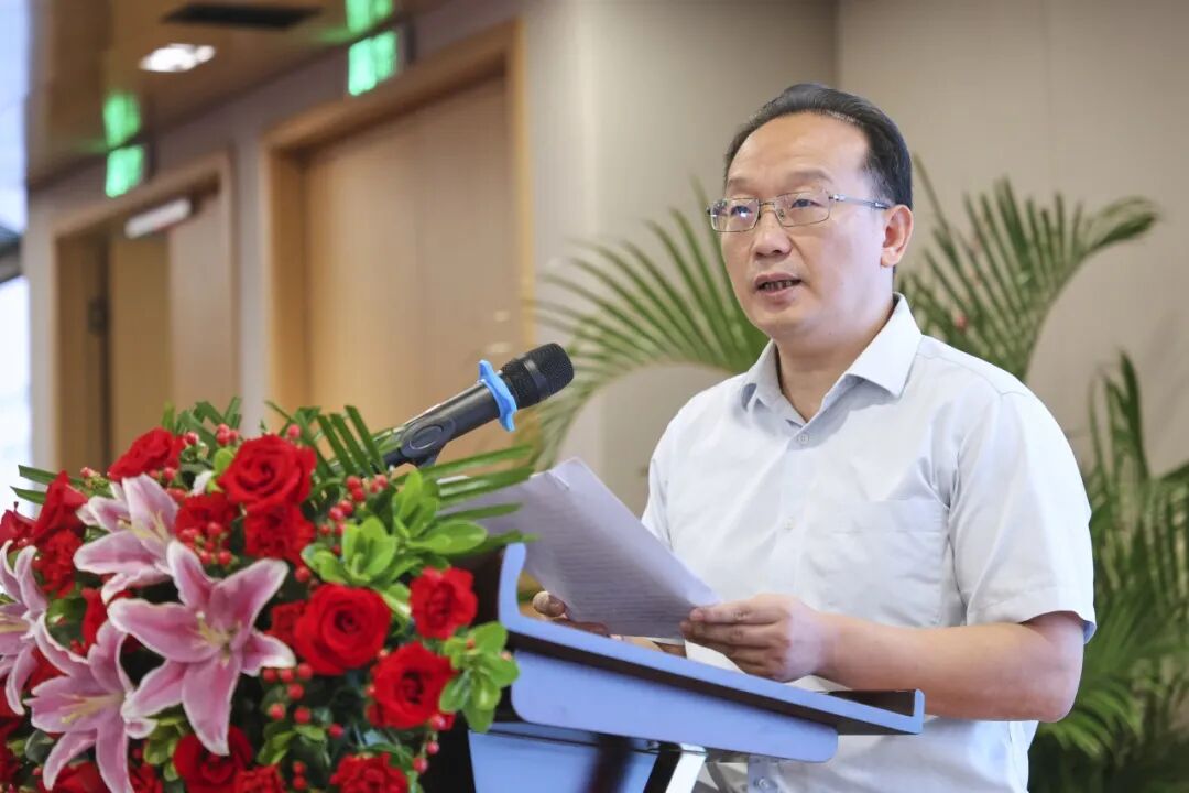 武昌区政协主席王兴文介绍了武昌区生态文明建设及“双碳”发展的最新进展情况。碳排放权登记结算(武汉)有限公司副总经理汪令新、湖北大学党委副书记祝欣分别上台发言,表达了积极发挥自身优势助力湖北武汉绿色低碳发展的愿望,并介绍了相关重点工作进展。