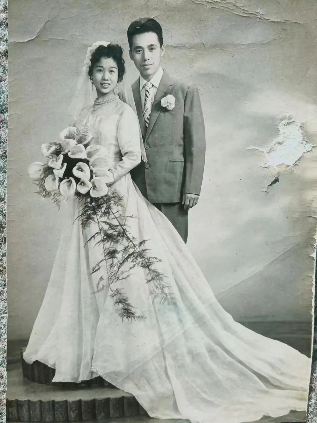 家住武昌区积玉桥街四清里社区的曹奶奶的抽屉里,存放着一张她珍视无比的婚纱照。照片中,曹奶奶面带笑容,身着一袭拖地雪白婚纱,头上戴着花朵做点缀的头纱,怀里抱着的马蹄莲,象征着忠贞不渝的爱。老伴徐爷爷西装笔挺,胸口别着鲜花,身板挺正,英俊帅气。