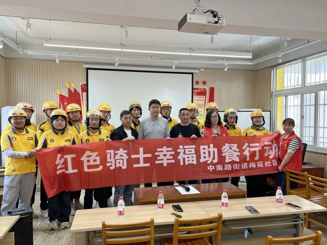 梅苑社区不断拓宽幸福食堂“辐射半径”,把新就业群体红色骑士志愿服务队与幸福食堂助老服务相结合,建立骑手送餐上门、老人在家收餐、食堂回馈骑手的闭环机制。街道成立新就业群体志愿服务队,开展“江城小蜜蜂”报事、急救知识等培训,发挥“移动”网格员、消防员、救护员三员合一作用,使“红色骑士”成为美好生活的守护者。