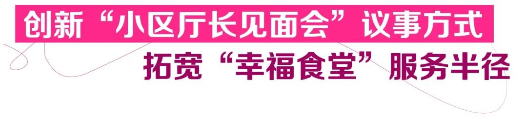 社区居民自发组建幸福食堂志愿服务队,参与日常运营监督和维护。食堂正式运营后,梅苑社区定期开展居民议事会,邀请居民共当食堂“合伙人”,不断改进、提升服务质量,探索食堂运营新模式,保证食堂的可持续运营。