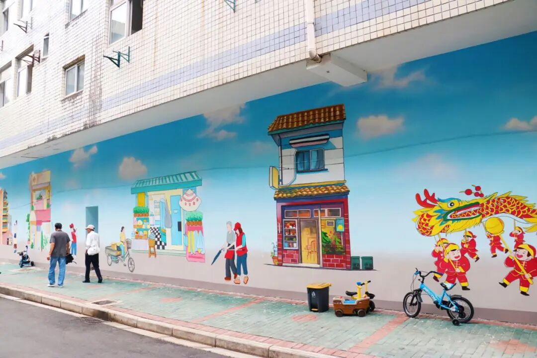“小巷院士”化身“形象设计师”,为提升东湖村社区商业文化氛围,吸引周边人气聚集,“东家、租户、商户”联盟与辖区共同提出沿东湖村路口打造一条独具特色的民俗文化街,通过资金自筹+街道匹配+单位共建的方式,开展“共同缔造文化墙”专题议事会,最终确定文字地标、社区演变、社区文化3大板块,巧妙地将街区历史与民俗文化有机融合,把墙壁打造成党员干部与居民群众接受文化熏陶的“露天课堂”、社区精神文明建设的鲜活载体、传播社会主义核心价值观的重要阵地。