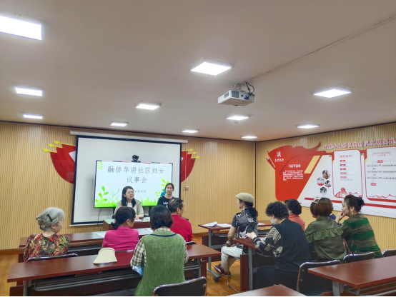 二是搭建妇女议事会。议事会形成了由心心向融妇女小组、楼栋妇女小组、社区妇女能人代表、物业、业委会代表组成的议事结构,规定两月一次的议事周期,规范了一事一议的议事方法。各方代表共同搜集问题、商讨处理方案,帮助解决妇女的操心事、烦心事、揪心事。通过妇女议事会,解决了小区内高空抛物问题、外墙渗水、电梯故障、房屋漏水等在内的多种问题,充分发挥了妇女在基层社会治理中的作用。