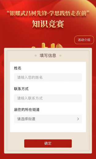 2、首次进入答题活动时输入姓名、联系方式、居住地所在街道。每天可答10道题,答对计0.5分,答错不计分,每天仅1次答题机会。