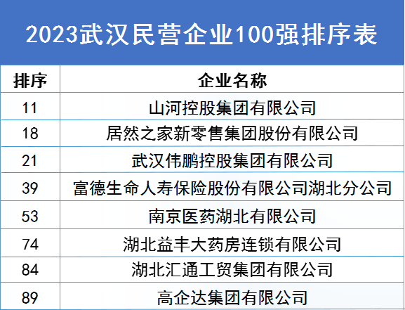 2023年武汉“民营企业100强”