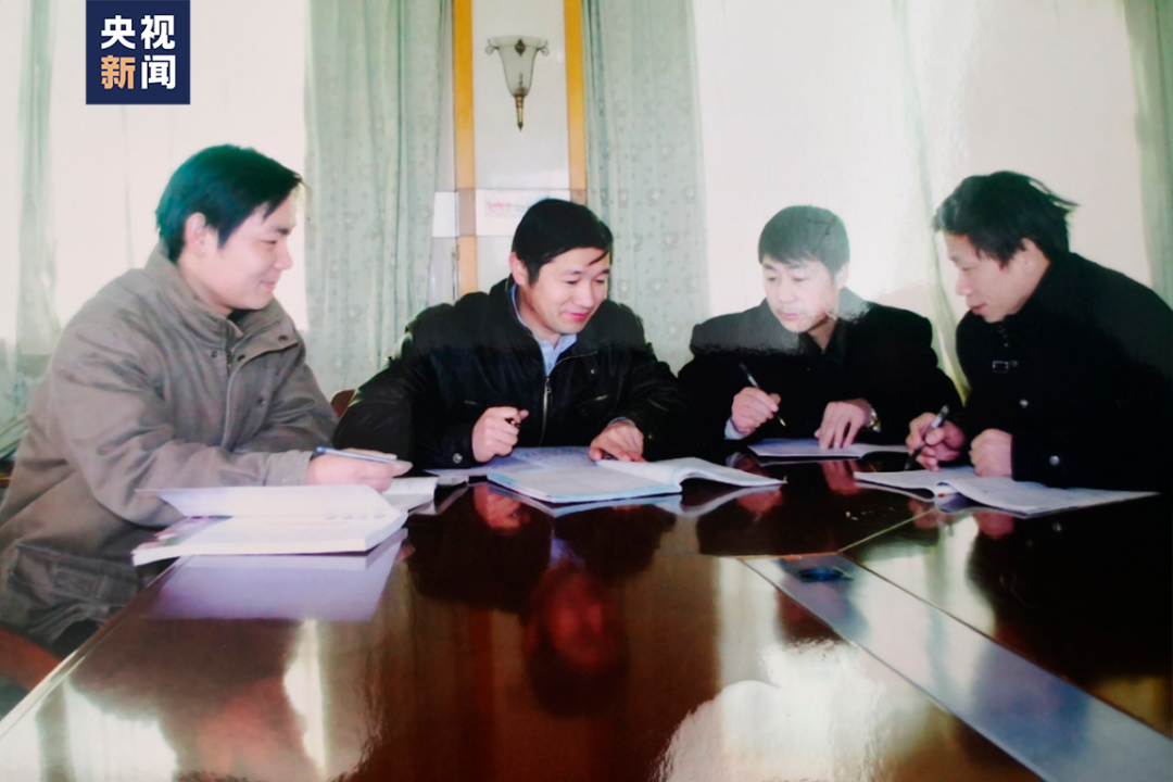 △程启明(左一)和自己曾经的学生陈武(中)成了同事。
