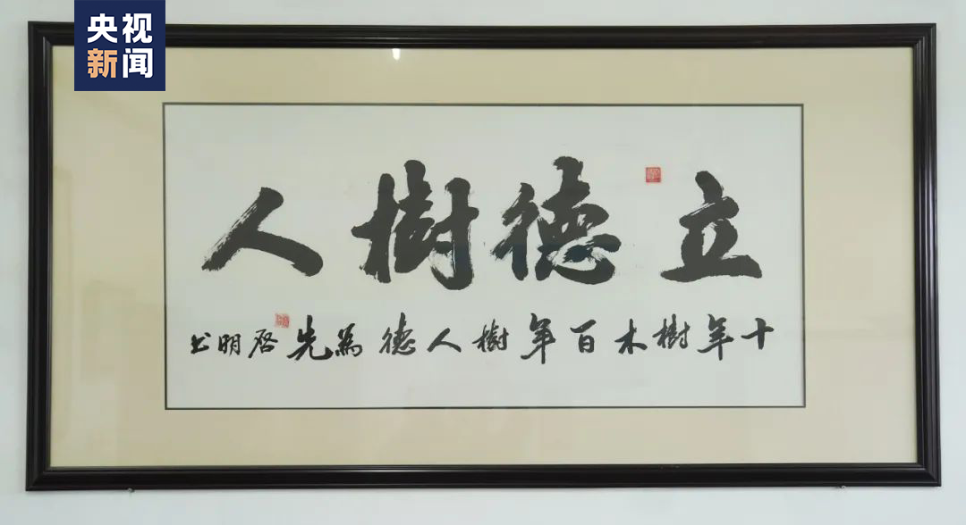程启明的办公室中挂着一幅他写的毛笔字,“立德树人,十年树木百年树人德为先”。程启明解释,这是老师的职责和使命,挂在办公室是一个提醒,也是心怀敬畏之心。