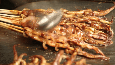 第一个出现扎堆的是陈大炎大连铁板鲜鱿鱼、胖哥苕皮豆干和蛋烘糕三家紧相邻的店,队伍排到了街面转弯处。还有骑电动车的小哥正朝这赶,后座上的女友没等车停稳,就急匆匆排进了早点的队伍中。大多数背包客,一看就是外地的。听着口音,果然天南地北。有浓重东北味的普通话,有叽里曲拐的粤语,还不乏吴侬软语和麻辣味的川渝话。这些年轻男女,背着时尚包包,却都扑向这些街边不起眼的“苍蝇店”。真那么好吃?看他们,或手里端着奶茶,拿着刚出锅的豆干,或一串串鱿鱼。吃得酣畅淋漓,全然不顾武汉正是盛夏,汗流浃背;尤其是美女们,一改往日矜持,连妆容失色也无所谓。还有趿拖鞋、穿背心的本地男将也来赶热闹。看这阵仗,可想那味必美。