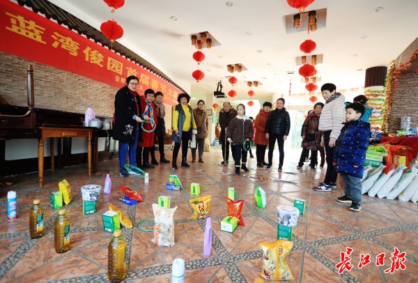 长江日报-长江网1月12日讯 春节将至,2020年1月12日,“社区居民迎新大联欢” 春节将至,2020年1月12日,武昌蓝湾俊园小区会所内张灯结彩,欢声笑语,其乐融融。由金都蓝湾社区委员会、蓝湾俊园业委会和小区物业公司共同主办的“社区居民迎新大联欢” 乒乓球、网球友谊赛、套圈,贴鼻子趣味游戏、写春联送祝福活动吸引了上至90岁的老奶奶下至3、4岁的幼儿等众多小区居民积极参与,丰富了小区业余生活,营造了欢乐和谐的小区氛围,同时也增进了业主、物业和社区工作者间的友谊。(记者何晓刚 摄影报道)