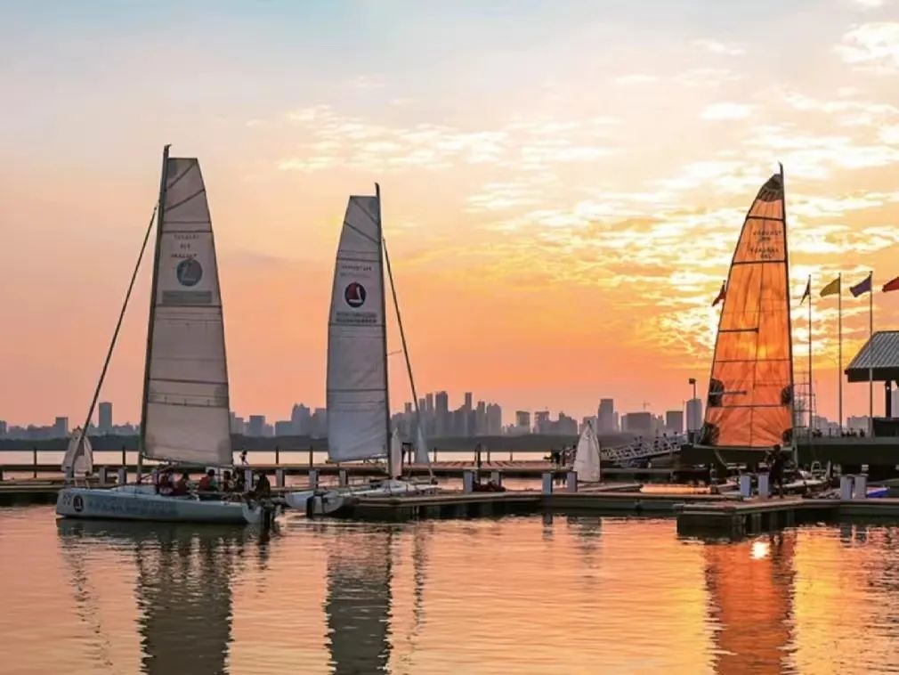 ▲ 在中华路码头打卡小龙马,与长江大桥、龟山电视塔和黄鹤楼同框