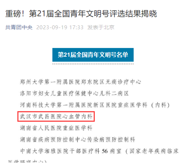 心血管内科自2017年成功创建“省级青年文明号”以来,在院党委的引领下,始终坚持把创建工作与业务工作、精神文明建设、人才培养结合起来,充分调动青年积极性,引领青年干事创业。坚持以精湛的技术、良好的职业道德,从预防科普宣传到急危重症救治再到康复随访,为心血管疾病患者实现疾病全程管理,打造了一支优秀的心血管专科团队,为医院高质量发展注入新的活力和能量。