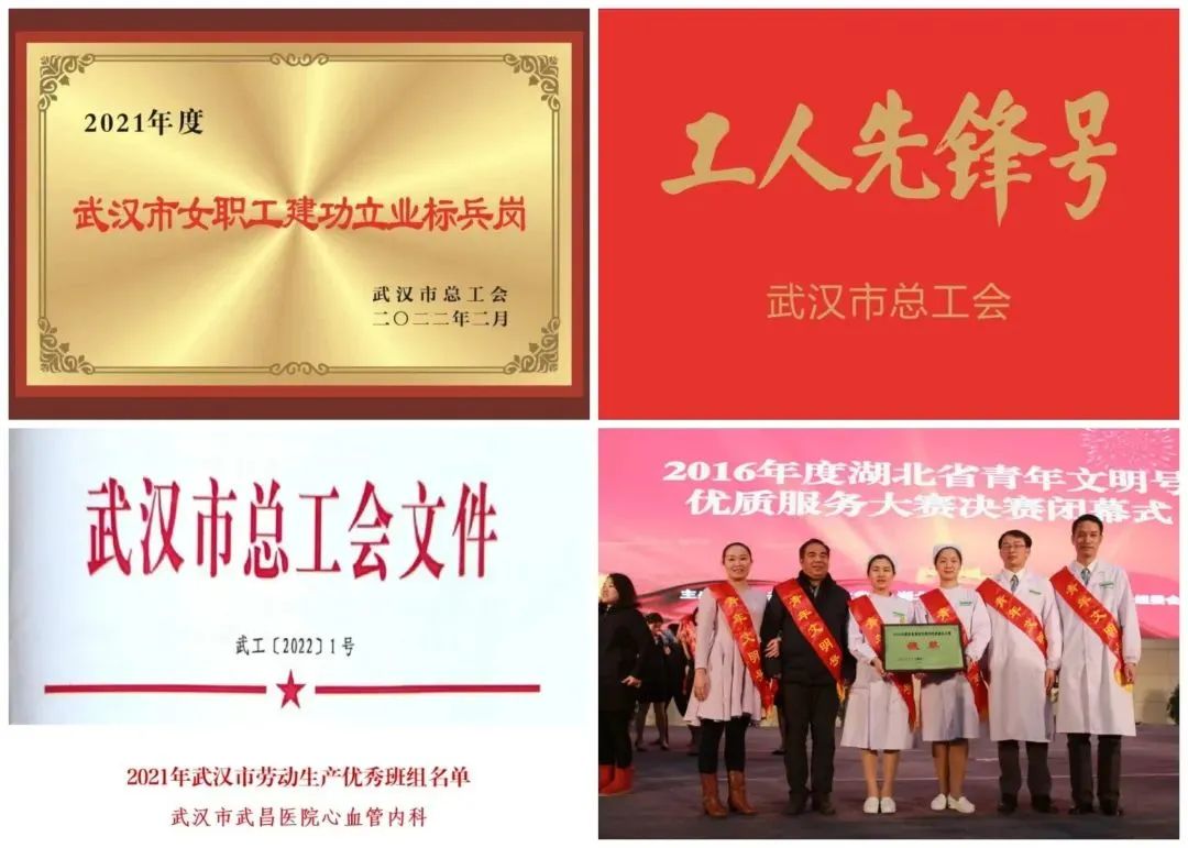 三年来,科室收到感谢信723封,锦旗105面。在武汉市卫生健康委2022年全市医疗卫生机构“双评议”排名中,获月度“十优满意单位”。心血管内科倾心服务群众的事迹被人民日报、湖北日报、长江日报等多家主流媒体宣传报道,多次登上学习强国,并先后荣获“武汉市工人先锋号”“武汉市劳动生产优秀班组”“武汉市女职工建功立业标兵岗”及武汉市青年文明号优质服务大赛一等奖、湖北省青年文明号优质服务大赛银奖。