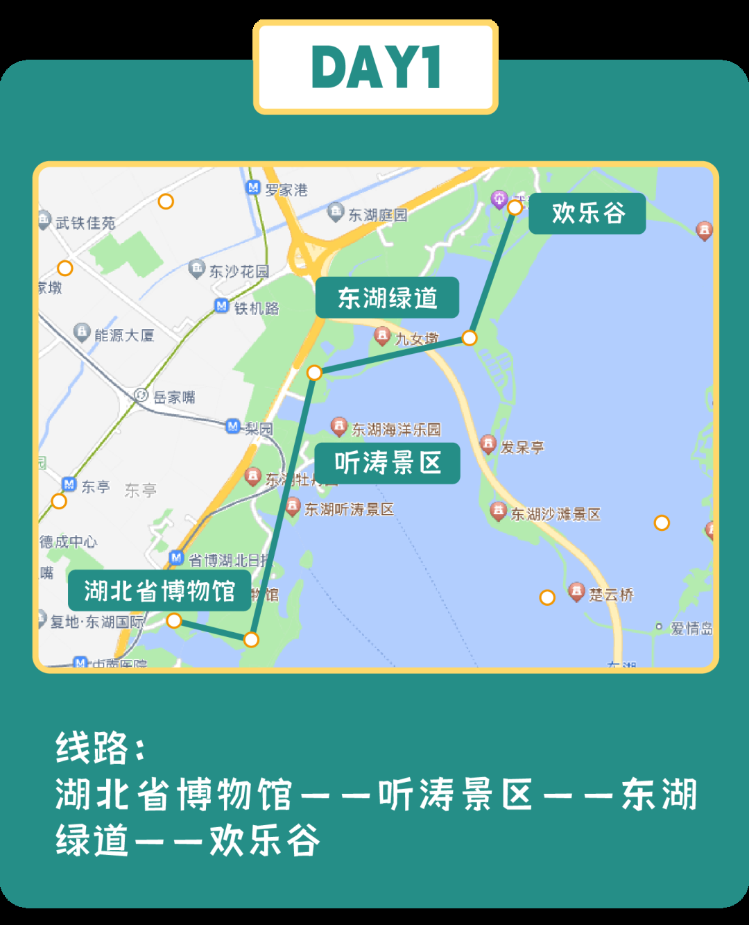 三天时间可以细细游遍东湖全境,囊括东湖大部分景点,同时还能尝试一部分小众玩法,成为东湖高阶玩家。