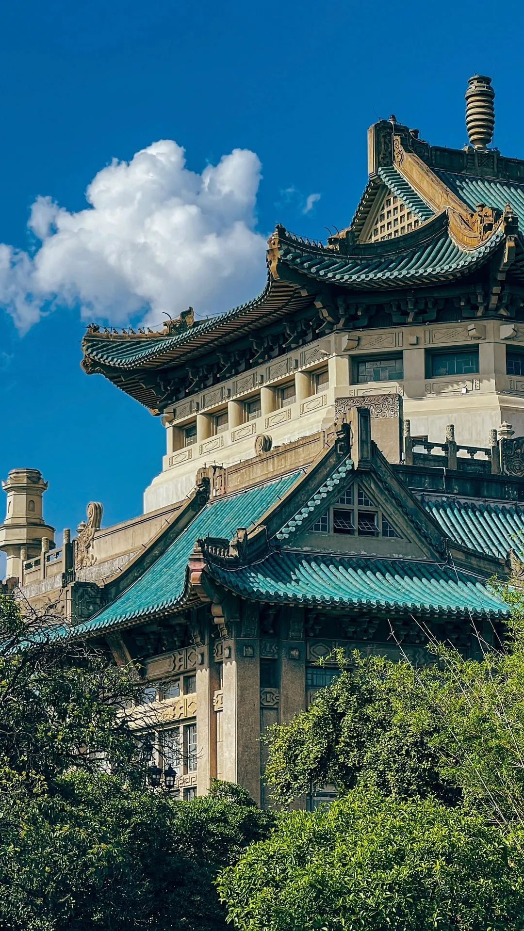 看看振华楼三院合一的宏伟,再赏赏春日教四墙上爬满的绿意,抵达珞珈文库时,你还能看到武大版的“霍格沃兹”……