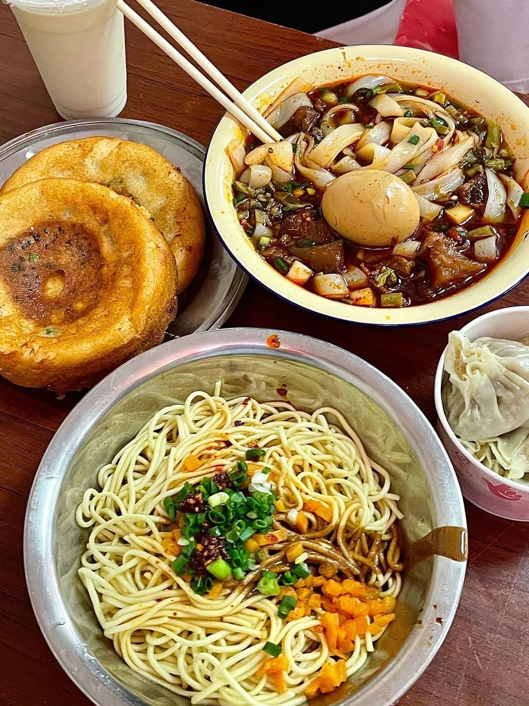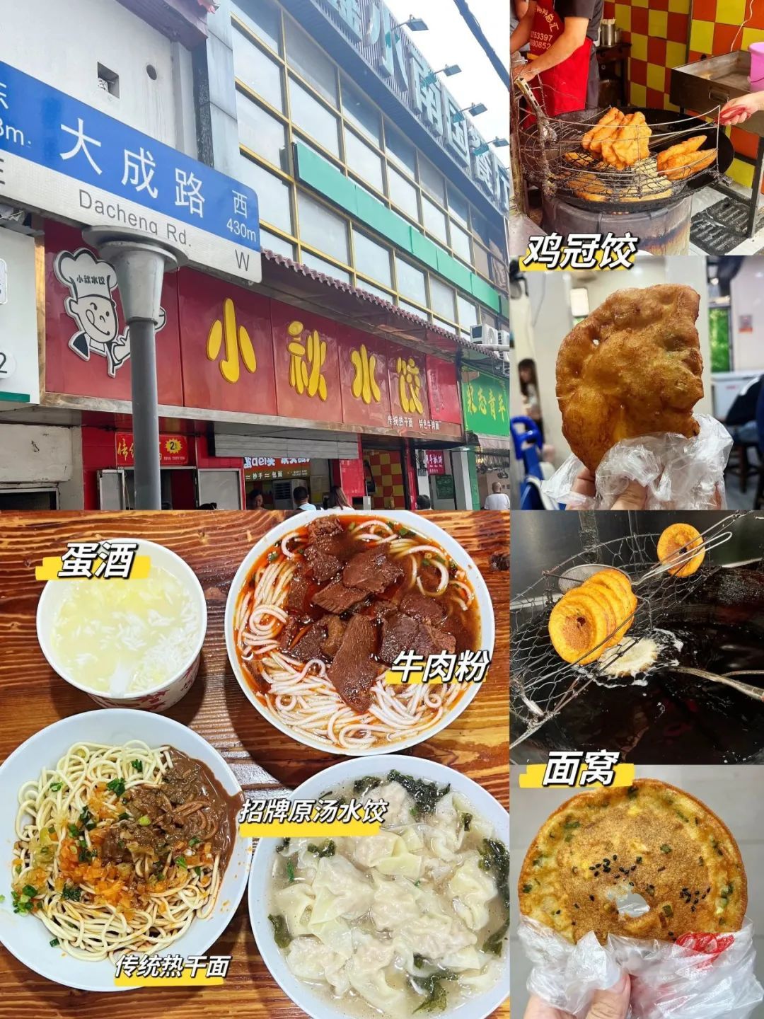 牛肉粉面、酥饺、牛杂锅、水饺......从早吃到晚,是这里居民的日常,不长几斤肉回去都是对大成路的“不尊敬”。