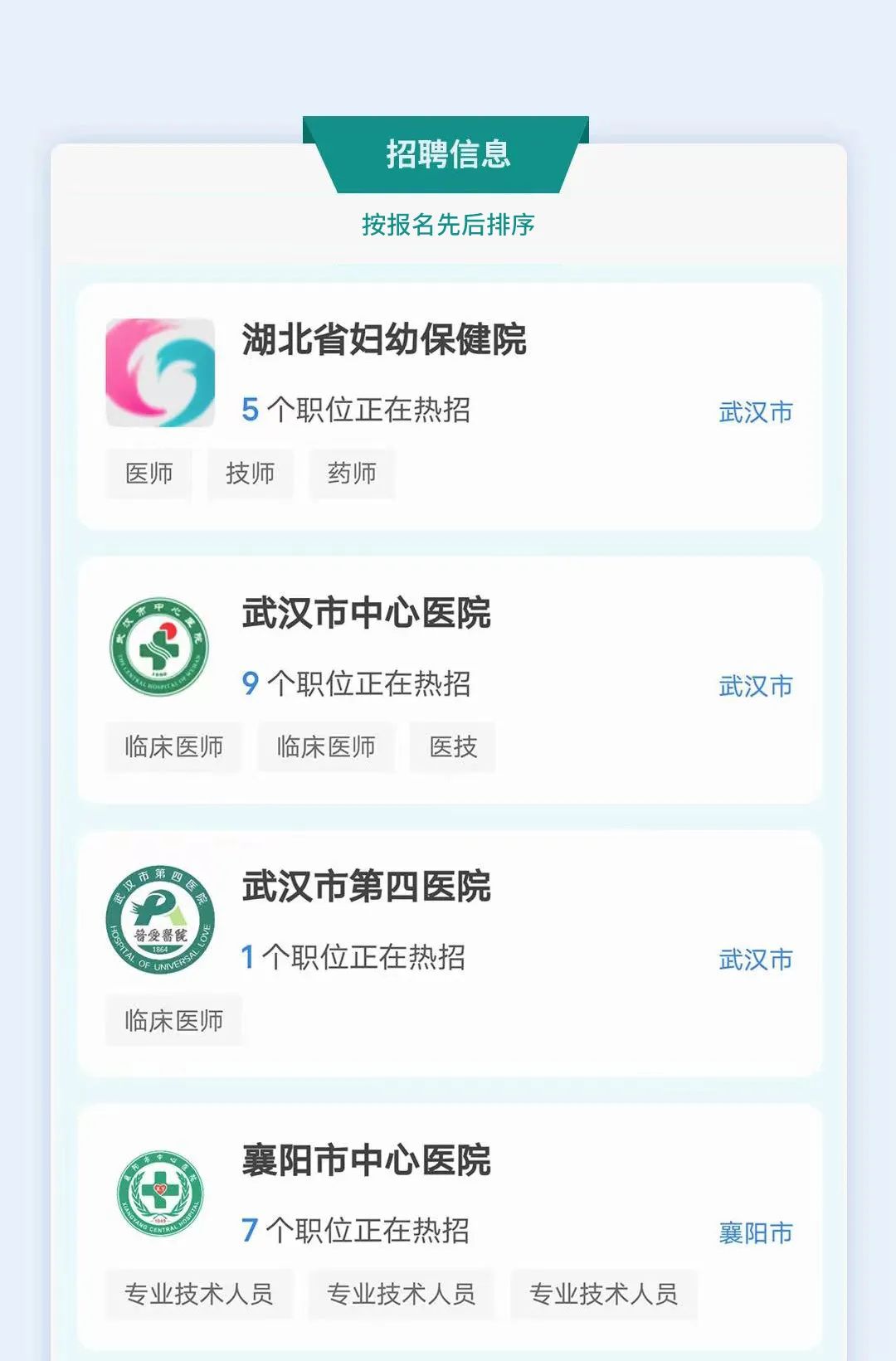 所有参会单位及岗位详细信息可登录湖北卫生人才网(www.hbwsrc.cn)查看,关注“湖北卫生人才”公众号在线投递简历。诚邀各大高校医学院校应届、往届毕业生、社会专业技术人员到现场与用人单位洽谈。