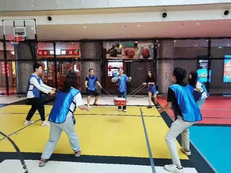 队员分别用绳子拉着鼓颠球,球的高度不得低于20厘米,规定时间内颠球的数量累计进行计分。