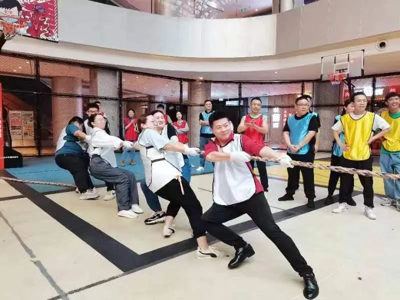 2队队员依次交错,分别站在河界后拔河绳的两侧,裁判员发出“预备”口令,双方队员站好位置,拿起拔河绳,拉直做好准备。裁判员发出“开始”口令后向后发力,中心红线越过1队的2米线,即该队获胜。