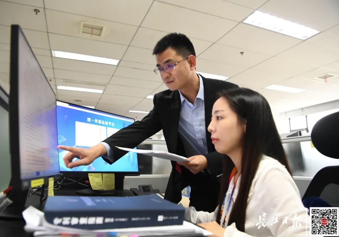 国家知识产权局专利局专利审查协作湖北中心,专利审查员在讨论发明专利申请的审查工作。