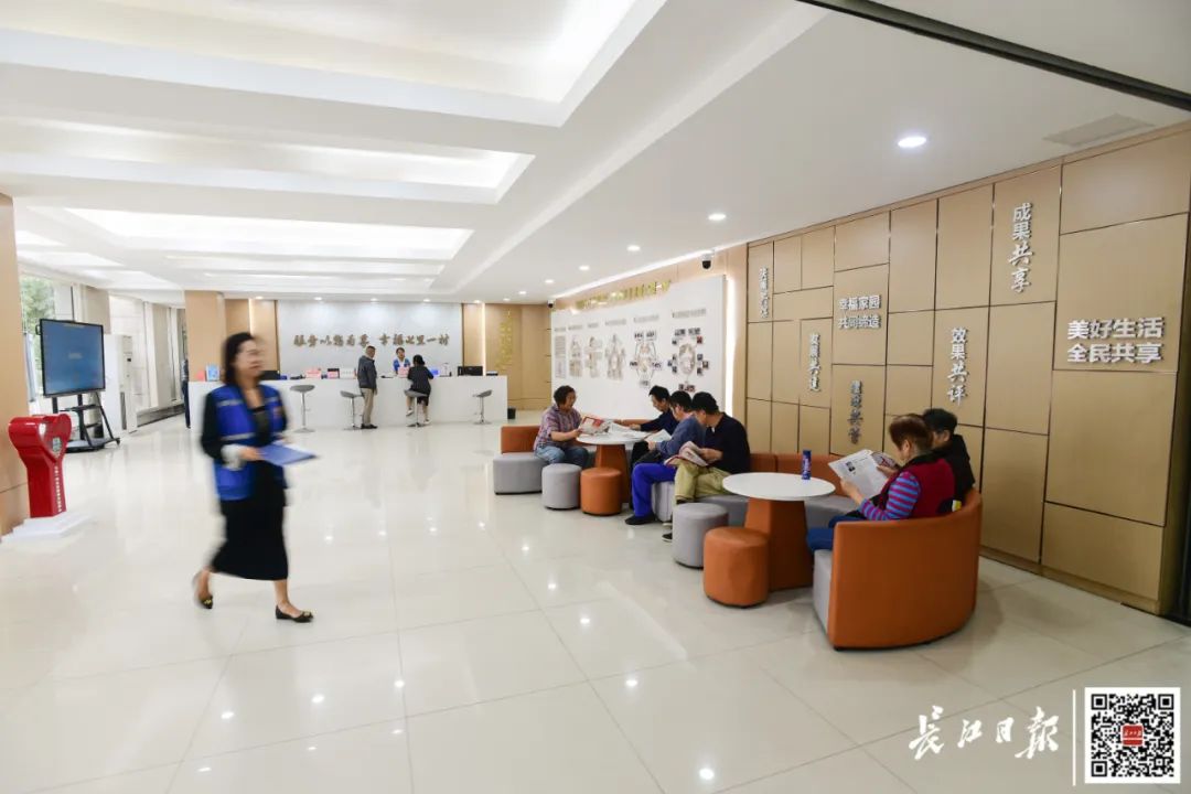 11日9时40分,79岁的杨斌辉走进汉阳区琴断口街道七里一村社区党群服务中心,看着宽敞大厅里的沙发和图书角,她停下脚步。正在政务服务岗值班的社区委员李文静上前一步,将老人扶到沙发上坐定。